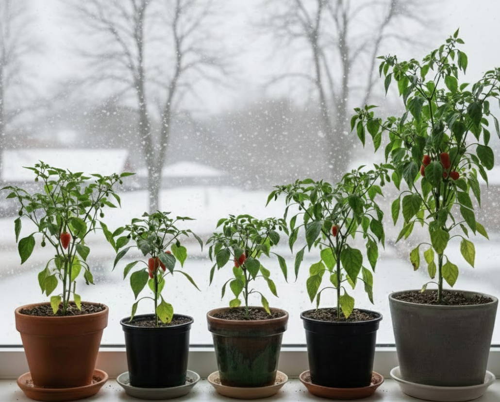 У пані Олени з Чернівців зима давно перестала асоціюватися з порожніми підвіконнями. На її кухні зелено цілий рік: уздовж вікна стоять кілька акуратних горщиків P9 із кущами кімнатного перцю «Гранді». Компактні, до 80–85 см заввишки, вони не займають багато місця, зате дають регулярні хвилі врожаю. У сезон з одного такого горщика можна зібрати до 1,2 кг власного перцю, не виходячи з квартири.